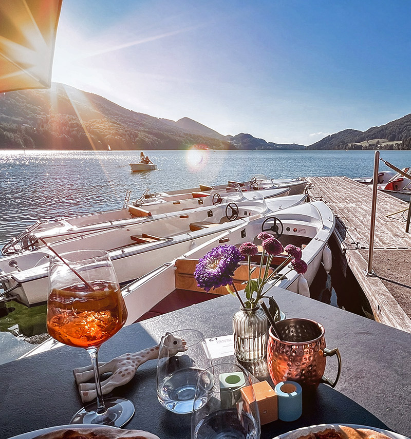 Ob Sie nach einem Restaurant in Fuschl am See suchen oder gezielt ein Restaurant direkt am Fuschlsee – im Edenbergers finden Sie beides: zentrale Lage im Ort und unmittelbaren Zugang zum See mit großzügigem Gastgarten, Elektroboot-Verleih und Panorama-Sonnenuntergang.